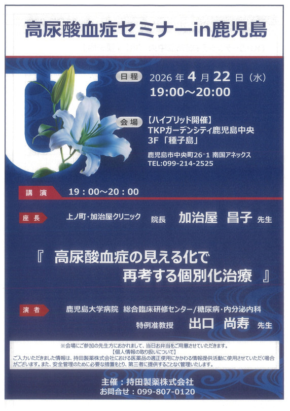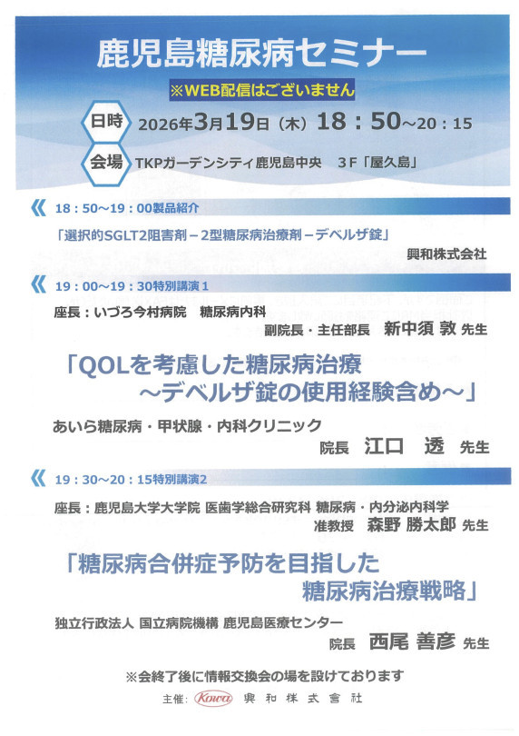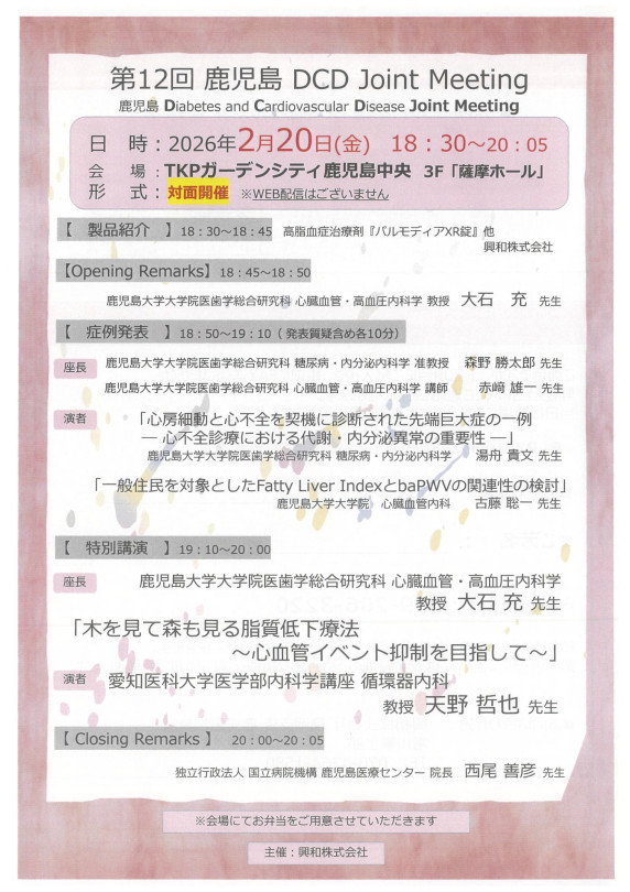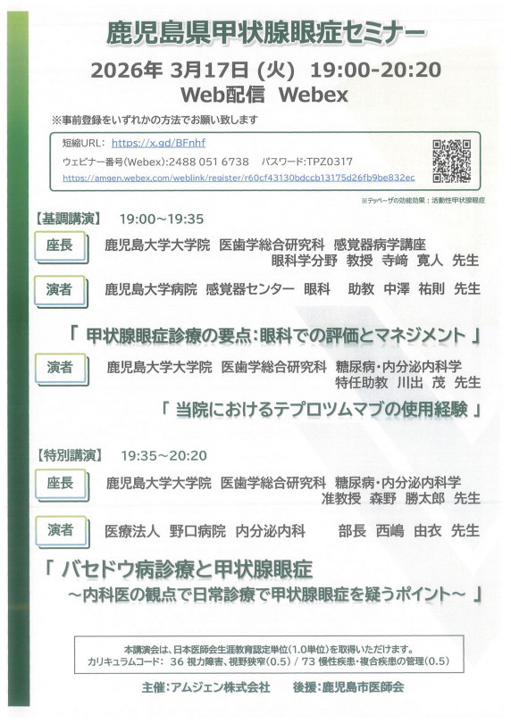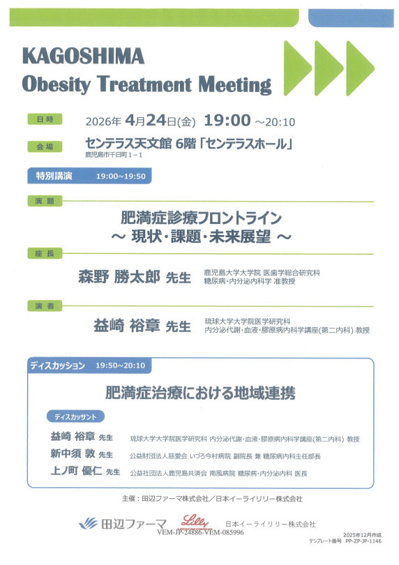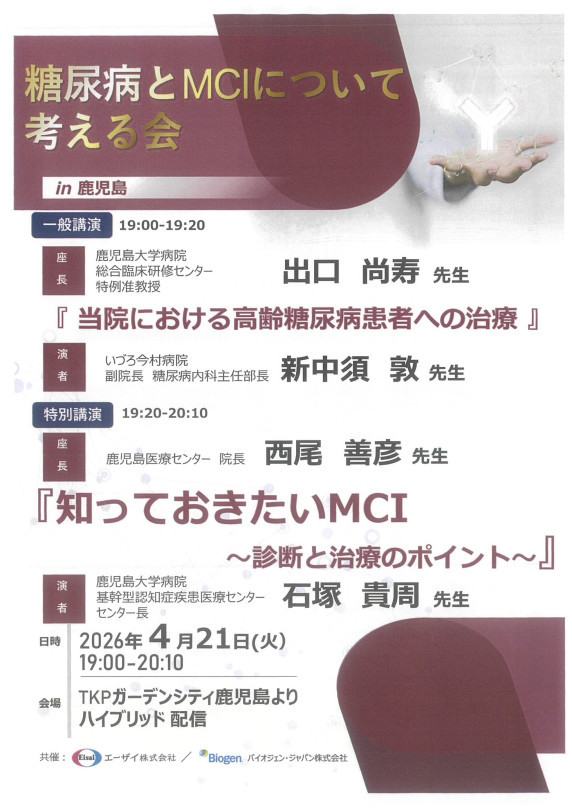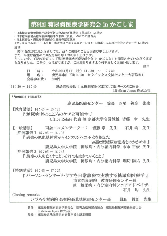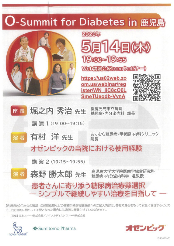 鹿児島大学大学院医歯学総合研究科人間環境学講座 糖尿病・内分泌内科学 〒890-8520 鹿児島市桜ヶ丘八丁目35-1